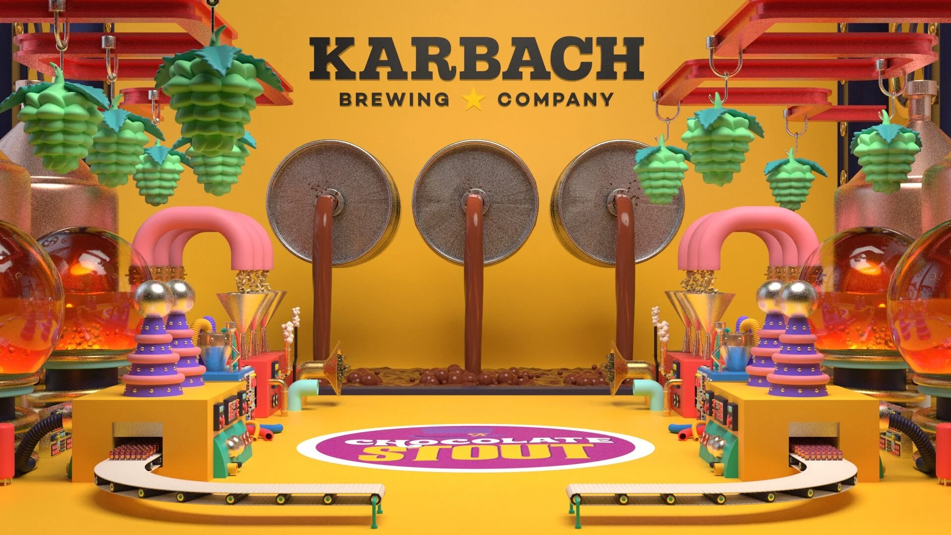 Beer and chocolate — What’s not to love? Set out as a passion project that ended up getting a hat tip from the big guys themselves, was definitely worth all the blood, sweat, and beers that went into making this spot. The concept was to take the theme of the can design and create a Willy Wonka inspired beer brewing factory. So, it was time to let the imagination sink in and go to work. It needed to have everything from carbonated bubble horns, dandy candy malt mixers, everbitter hopstoppers, and even chocolate kegfalls!